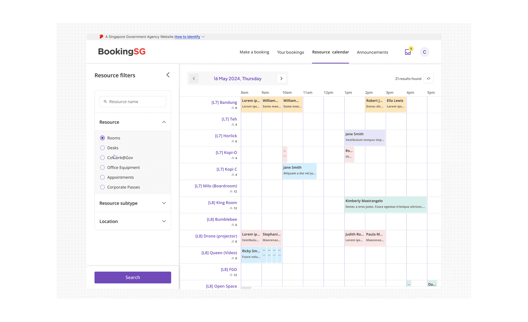 My work as an intern for BookingSG, a product under GovTech Singapore that aims to create a booking platform that is customisable for varying use scenarios across whole of government.