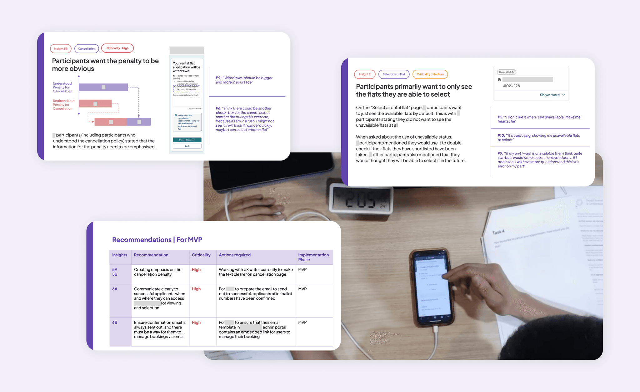 Participating in one of my first structured usability tests in a UX lab taught me the importance of asking effective, unbiased questions. I learned how to facilitate sessions without leading participants, and how to ask questions that revealed genuine user behaviors and insights.Synthesising insights so that the data is digestible for stakeholders